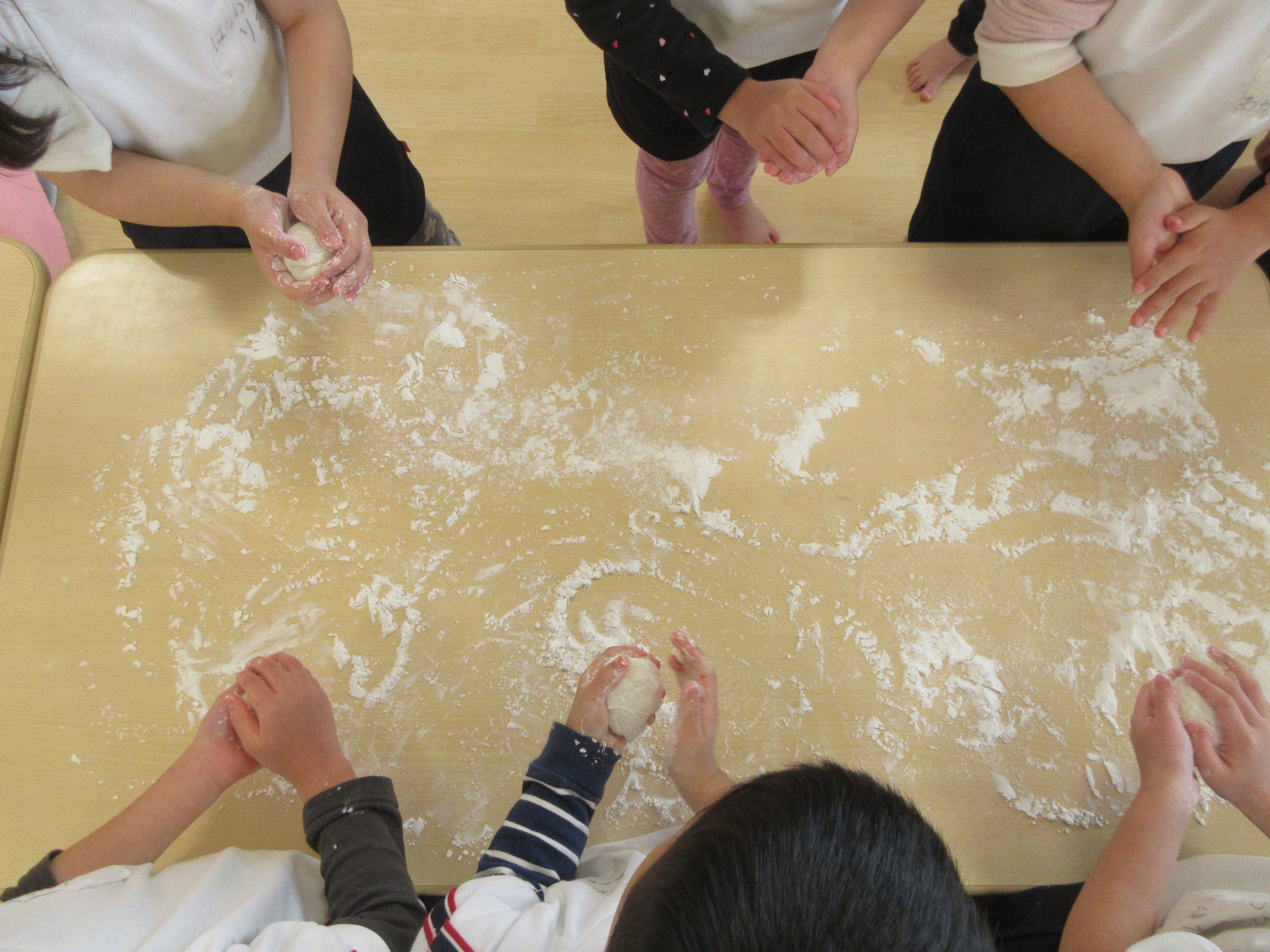 手のひらの中で自分たちが食べるお持ちを丸めました!!