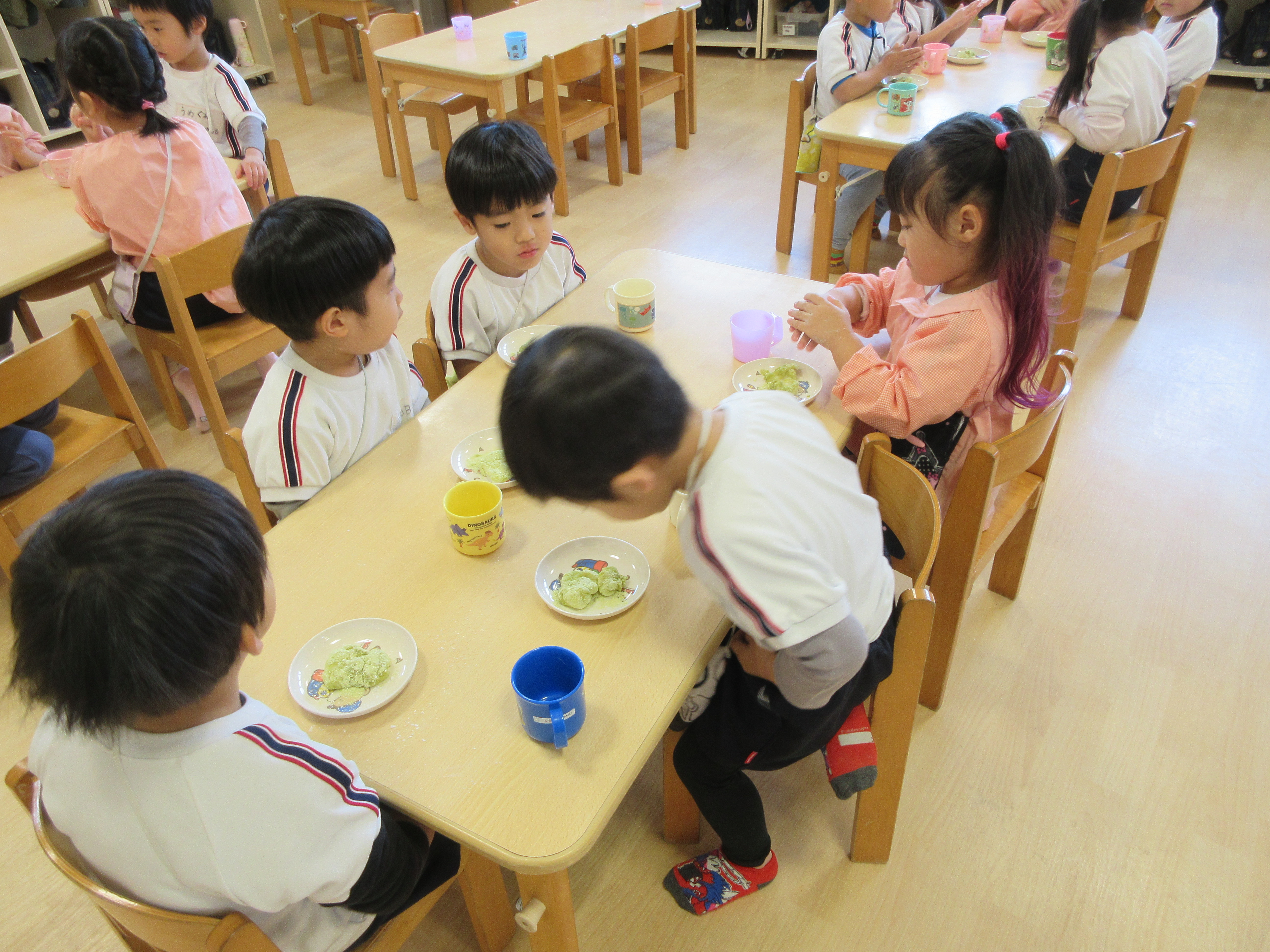 最後には黄な粉もちのおやつを食べて、園児たちも喜んでいましたよ!!