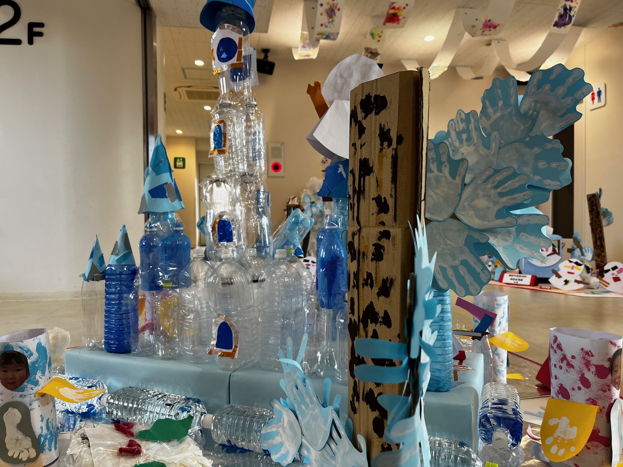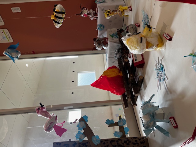 本日より、乳児組の作品をホールに展示しています。