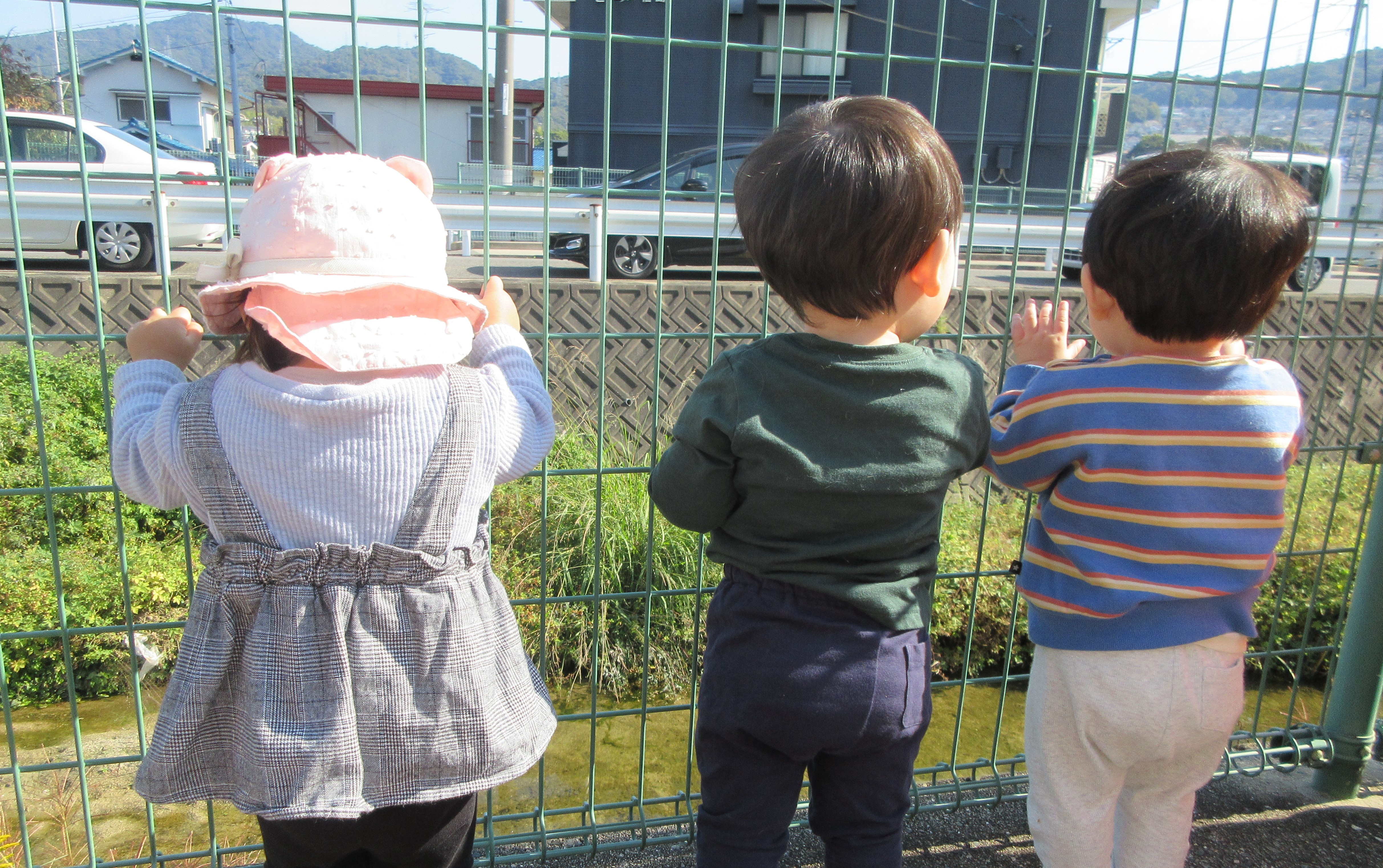 近くの川には鳥さんや亀さんがいて、こどもたちも興味深々でした!!