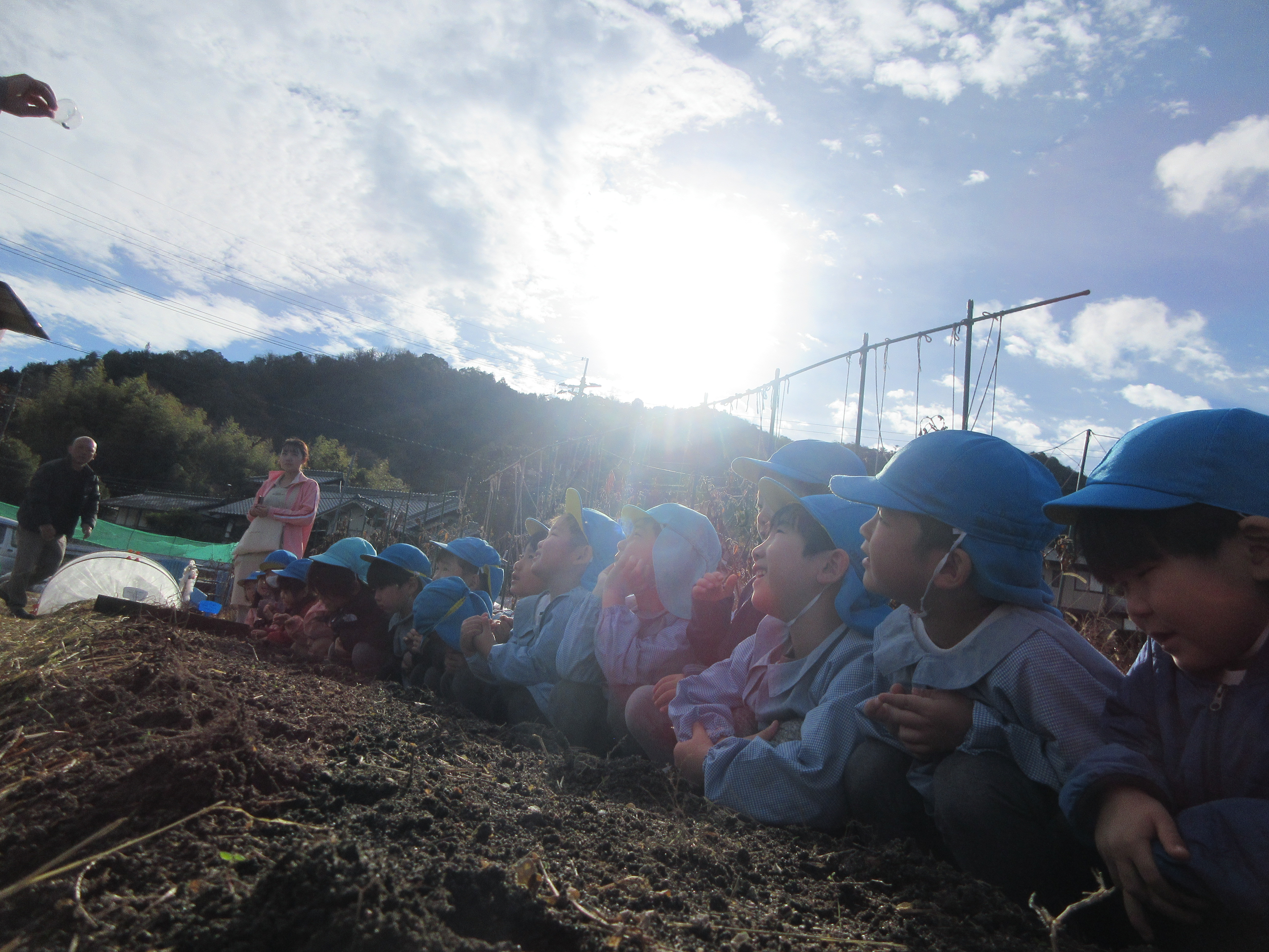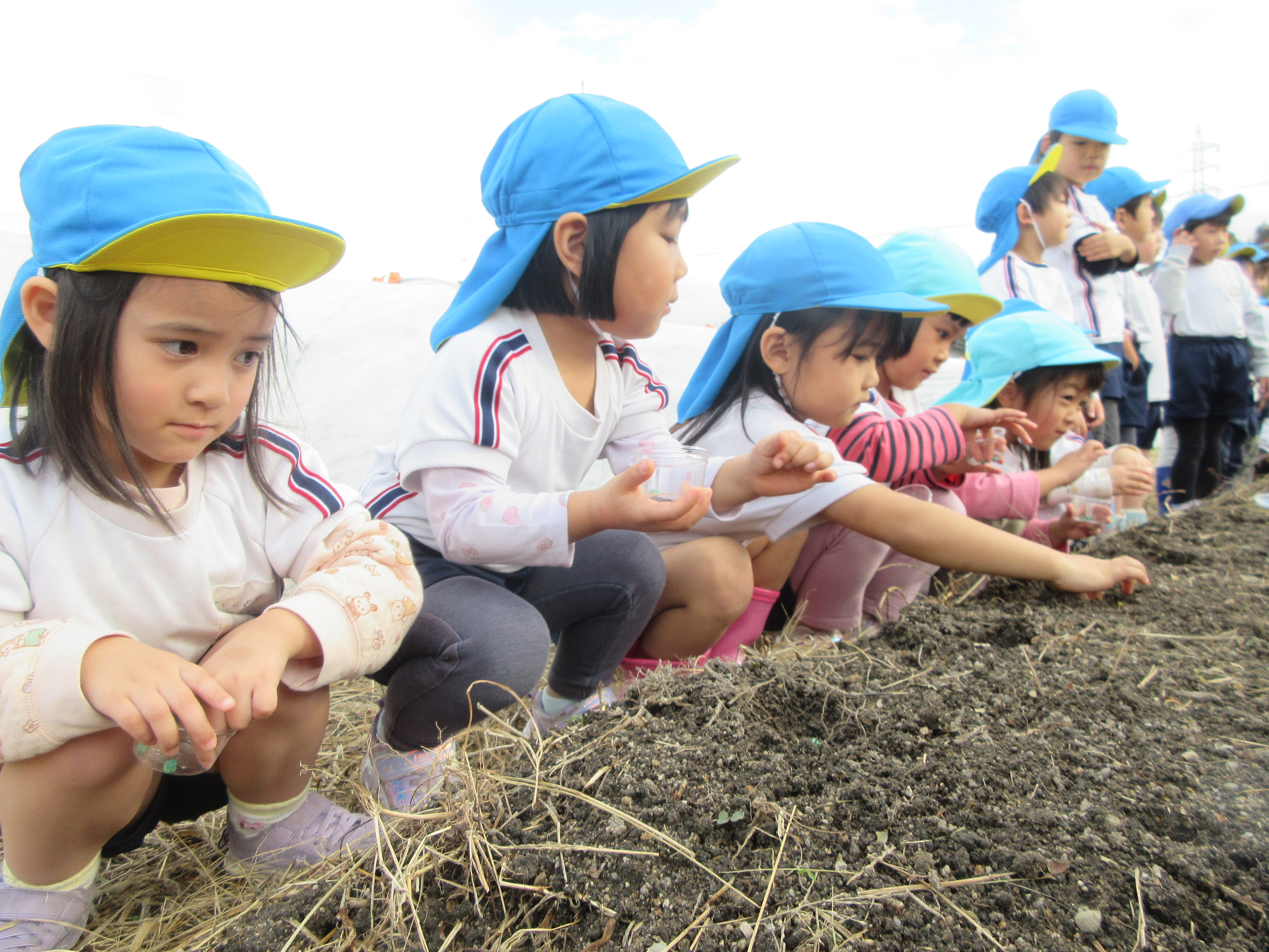 12月の涼しい日に青チーム(年中)さんで豆の種植えを体験しました。