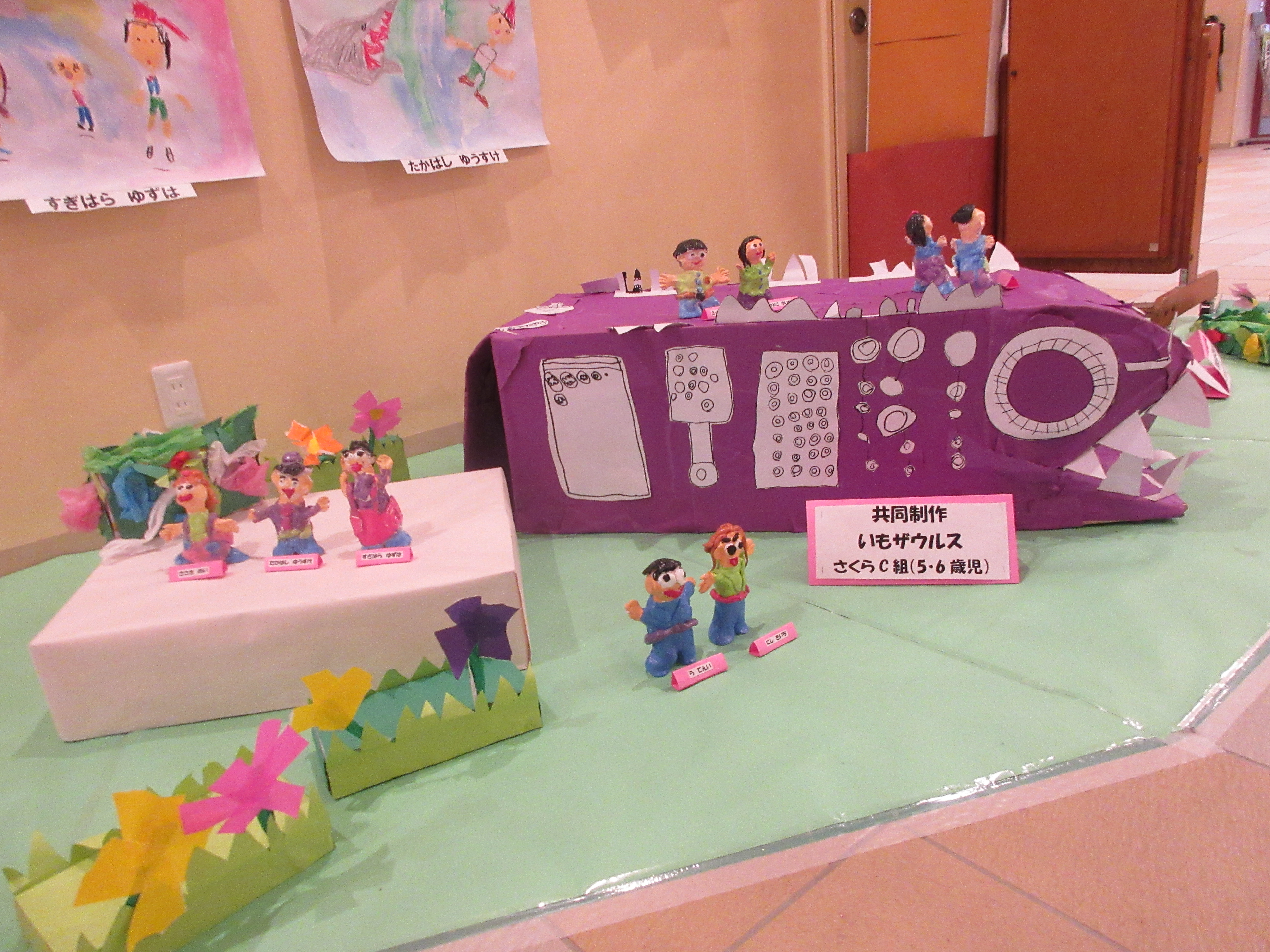 年長さんも頑張りました!紙を切ったり貼ったり、粘土を使って形を造り、色を塗りながら、絵本もモチーフにいろんな世界観を再現し、子どもたち一人ひとりの個性があらわれて、わくわくするアイデアがたくさんでした!!