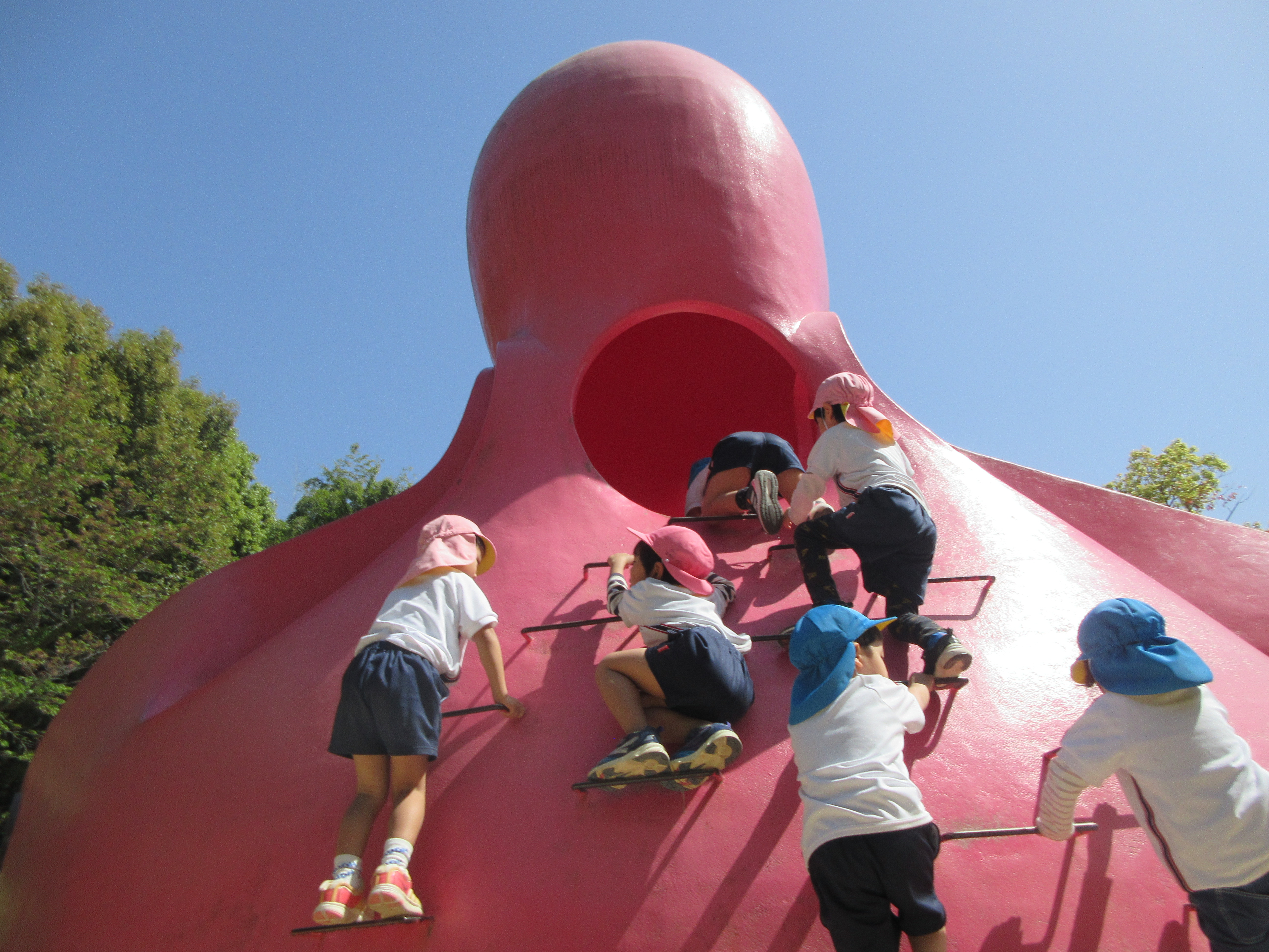 年長さんが年中さんと手をつなぎ歩いて空城山公園までいきました!