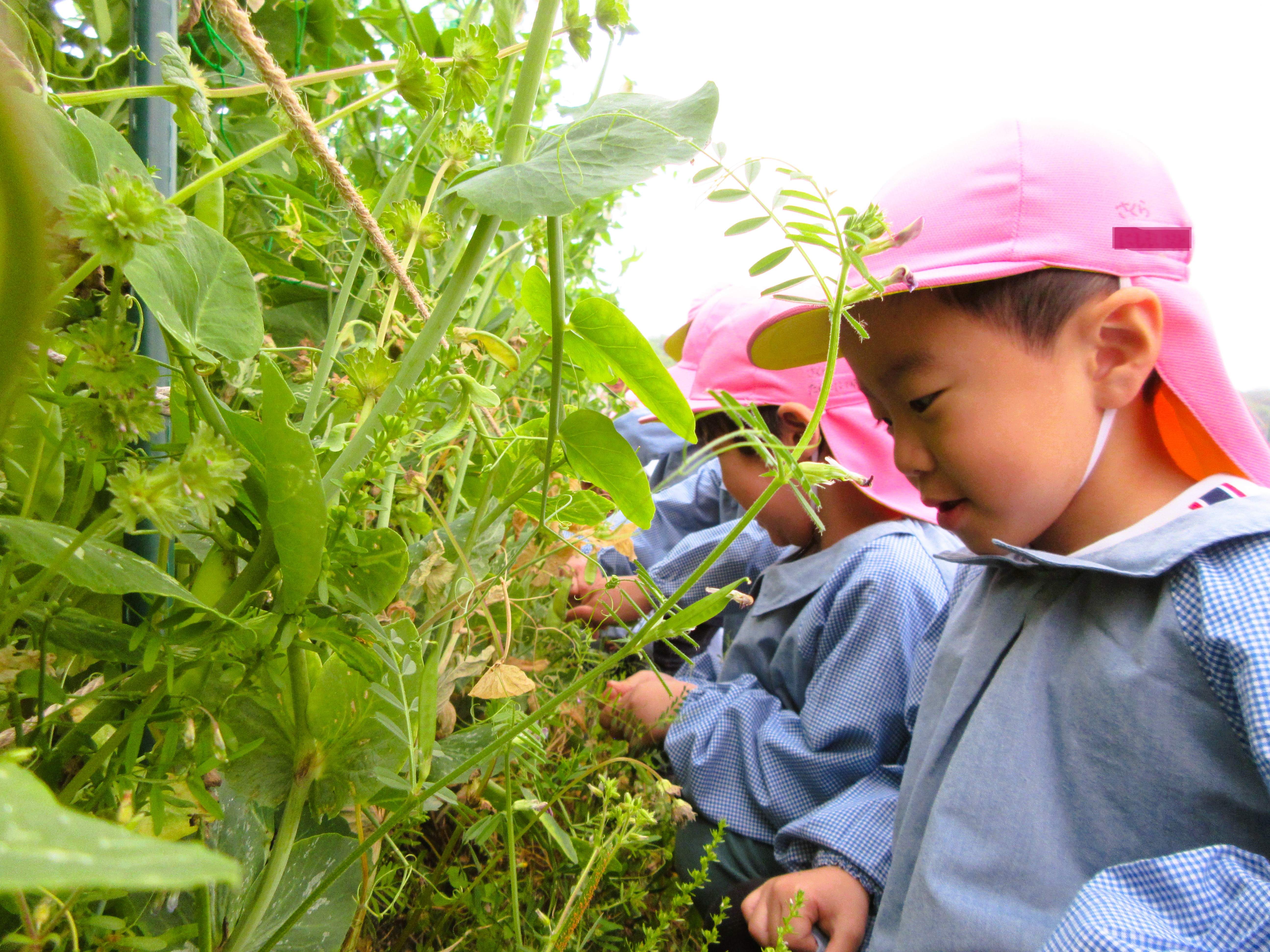 年中組の時にに心をこめて種をまいたお豆さんです。