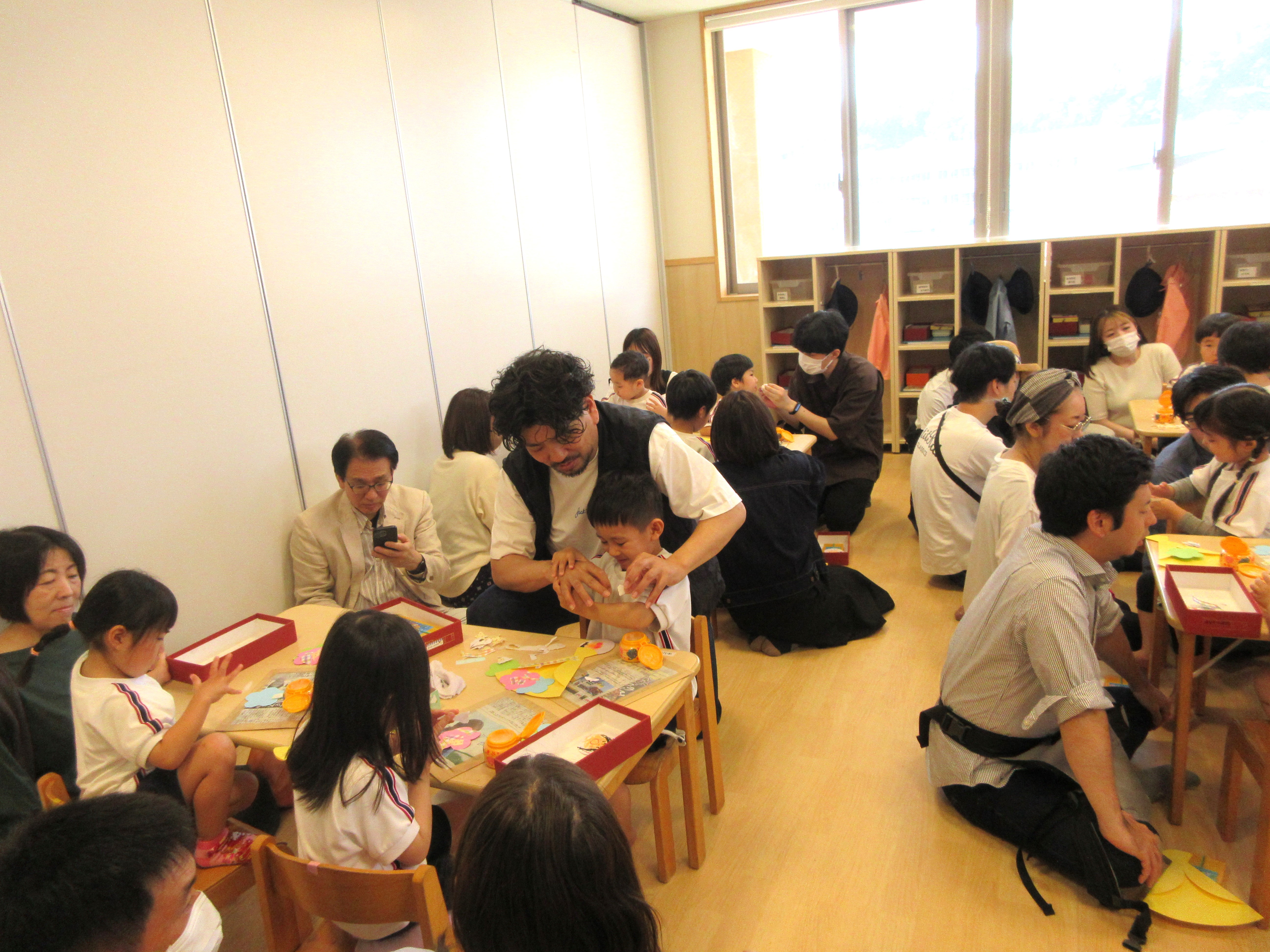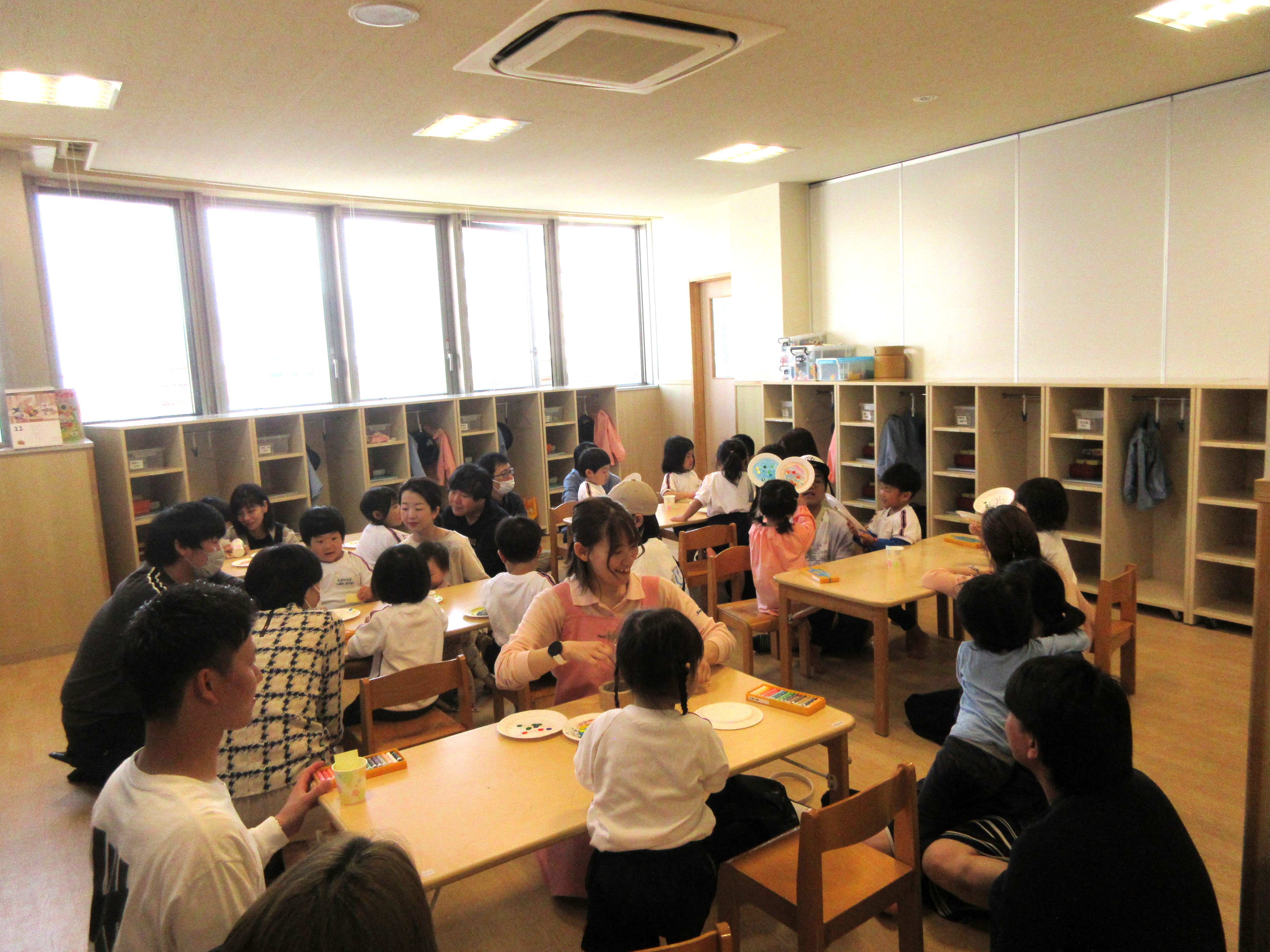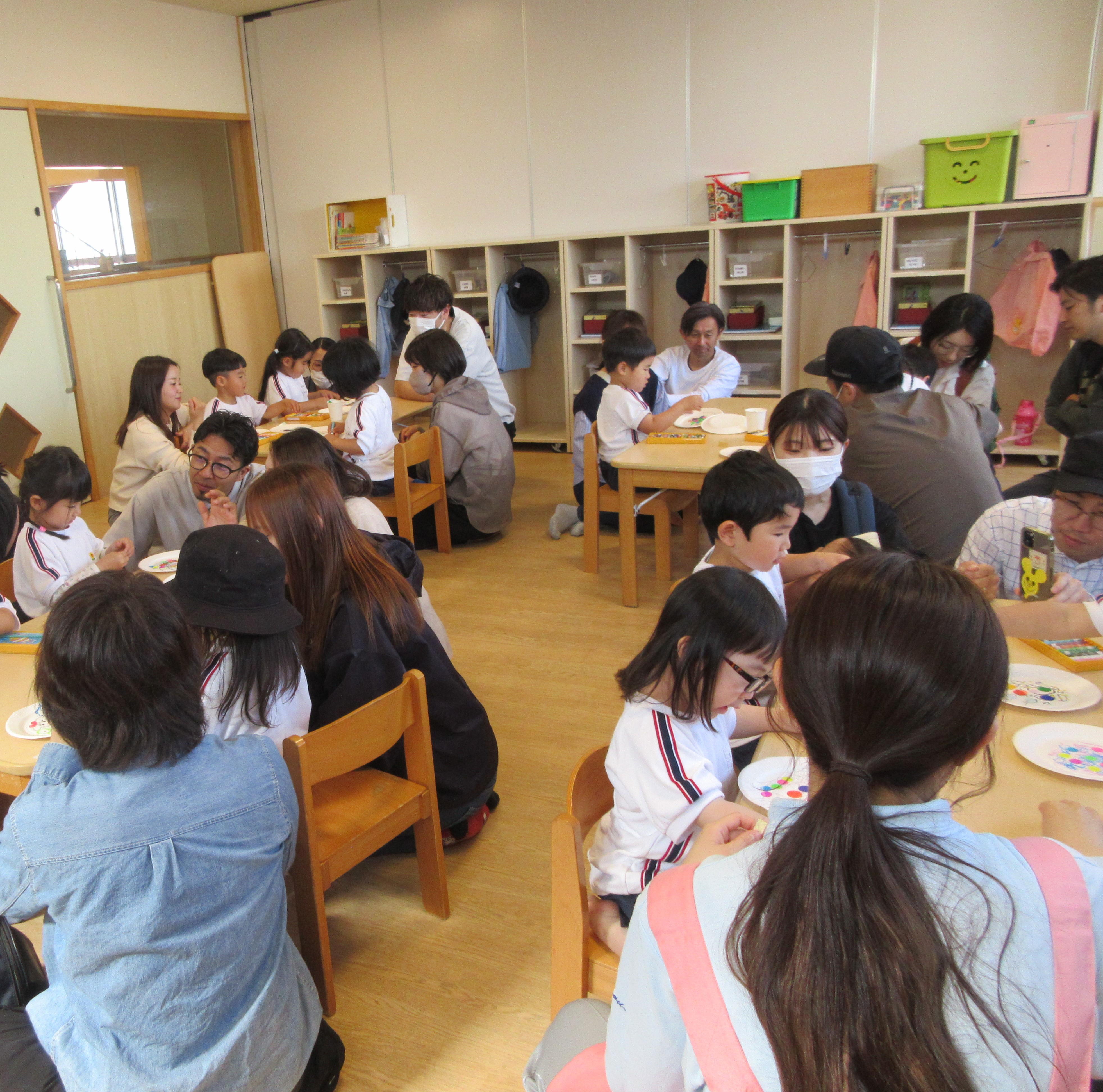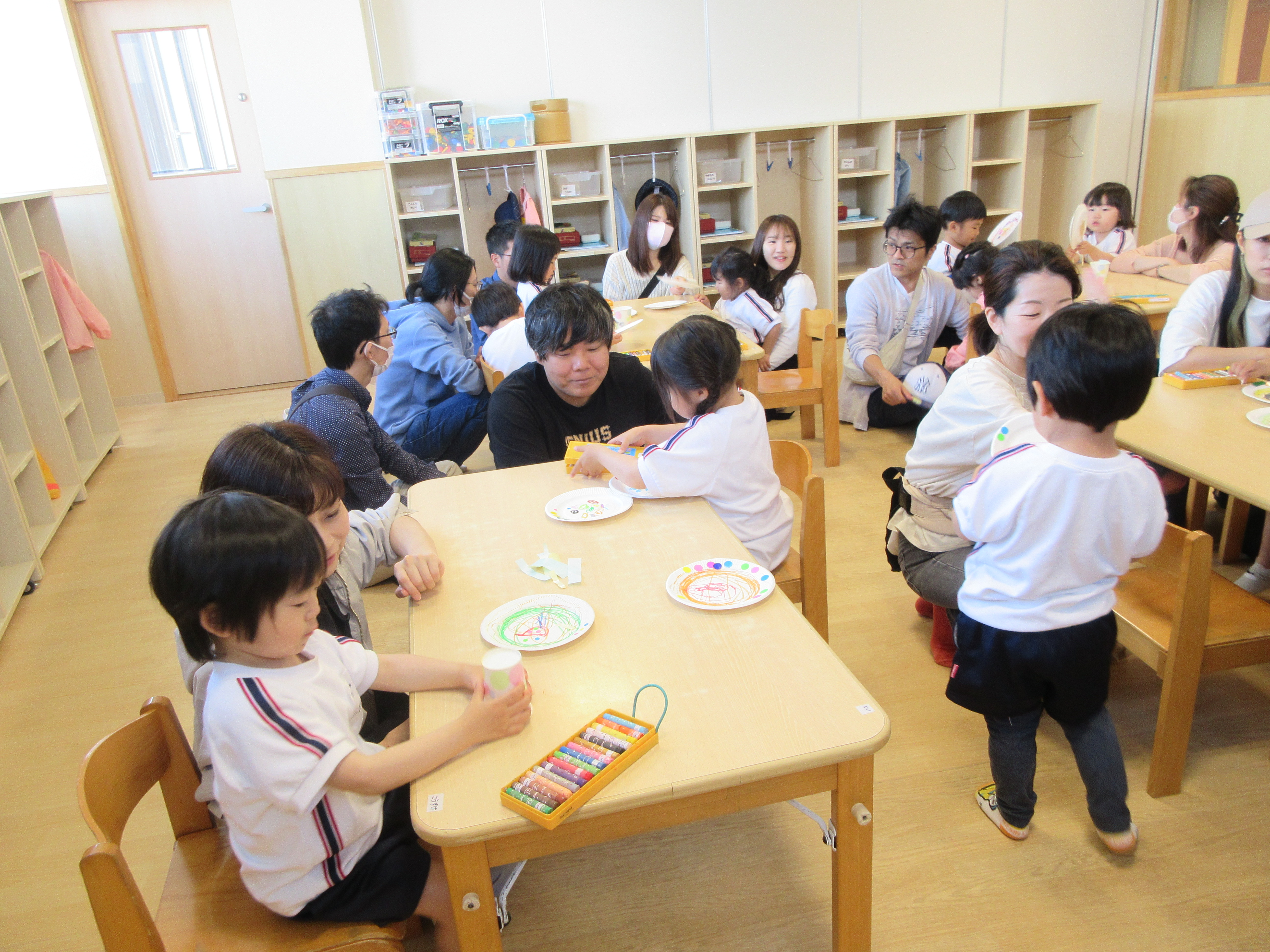 保参観日(幼児組)さんの様子ですが、乳児組さんでは、自分自身がいろんな素材に触れて、指先で感じること、幼児組さんになると子供が保護者の方と一緒に一つのものを作ったり動いたりすることで、楽しみが広がります。