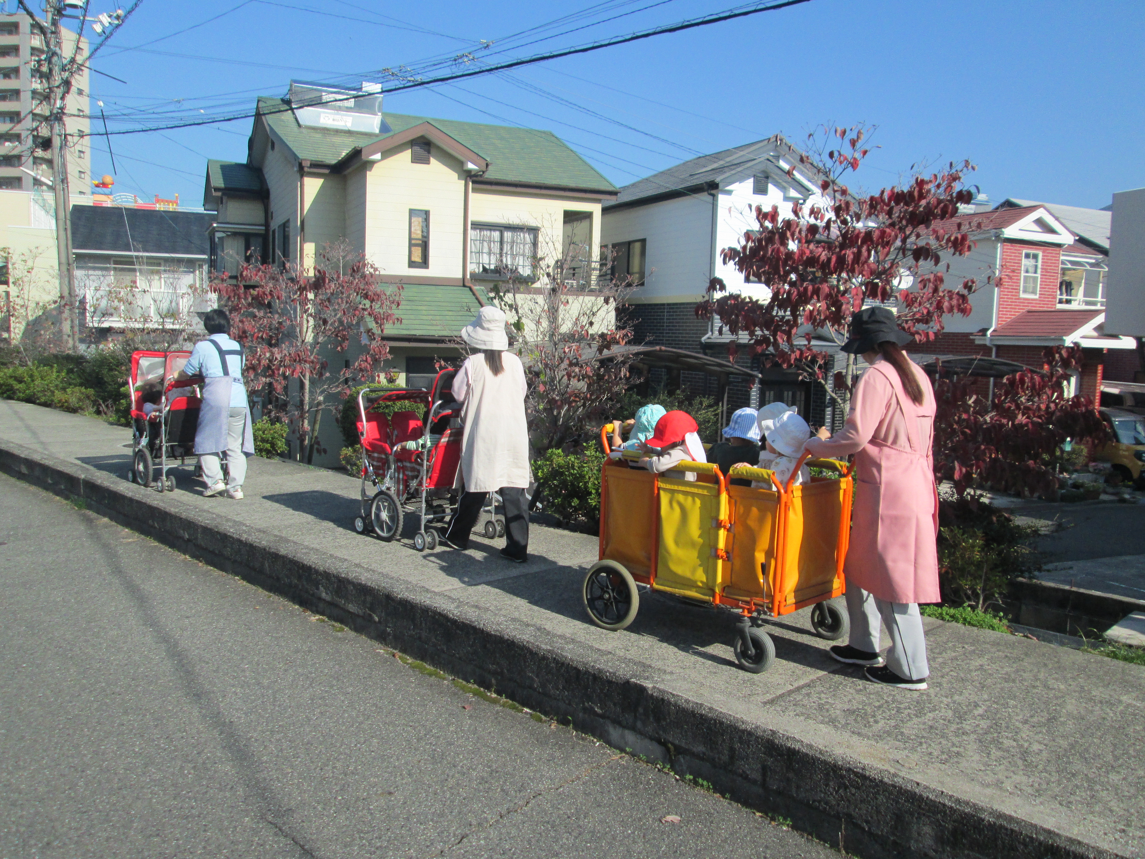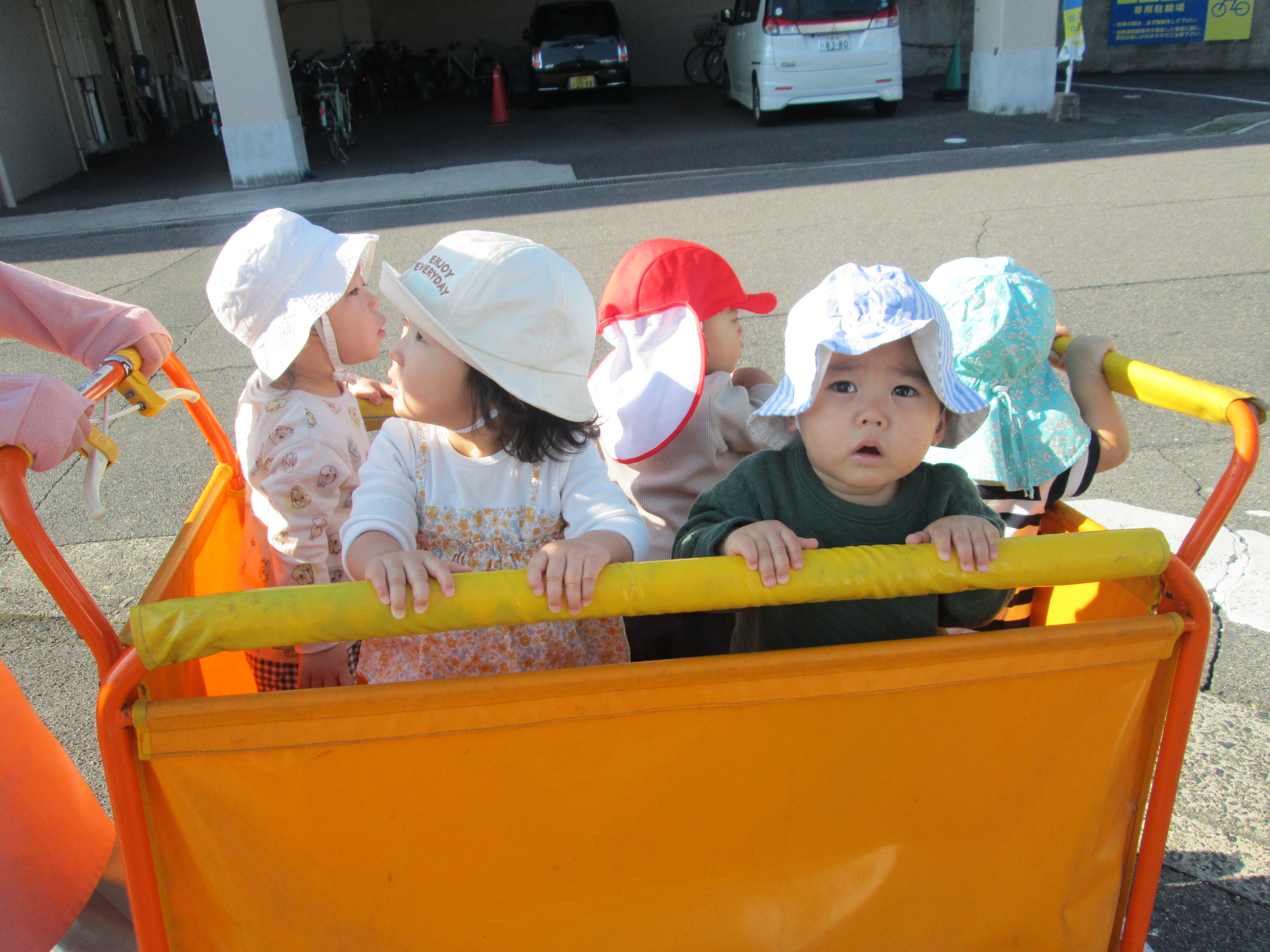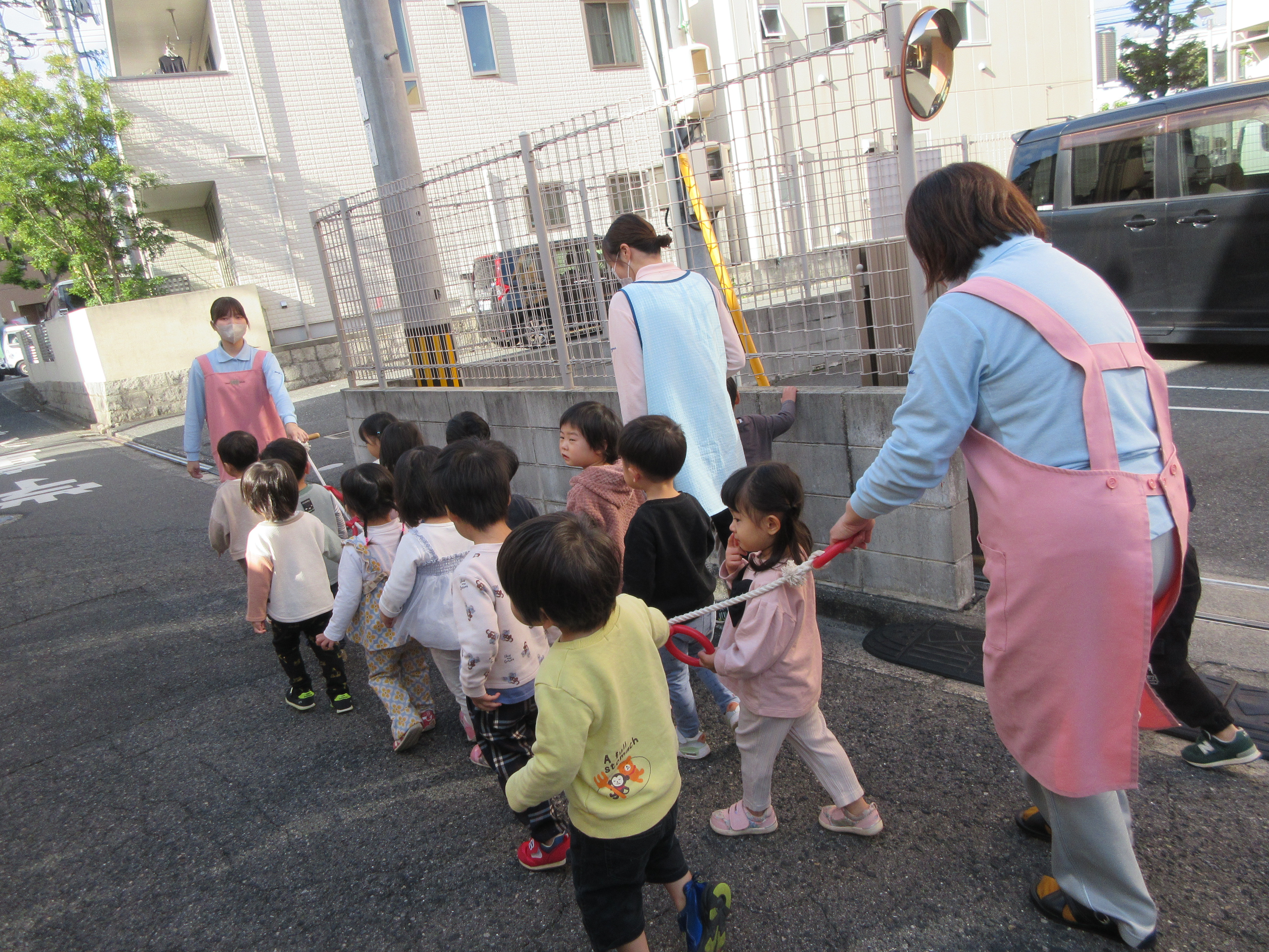 乳児さんは保育園の周りを散歩したり、近くの川まで歩く練習をしたりしてますよ♪
