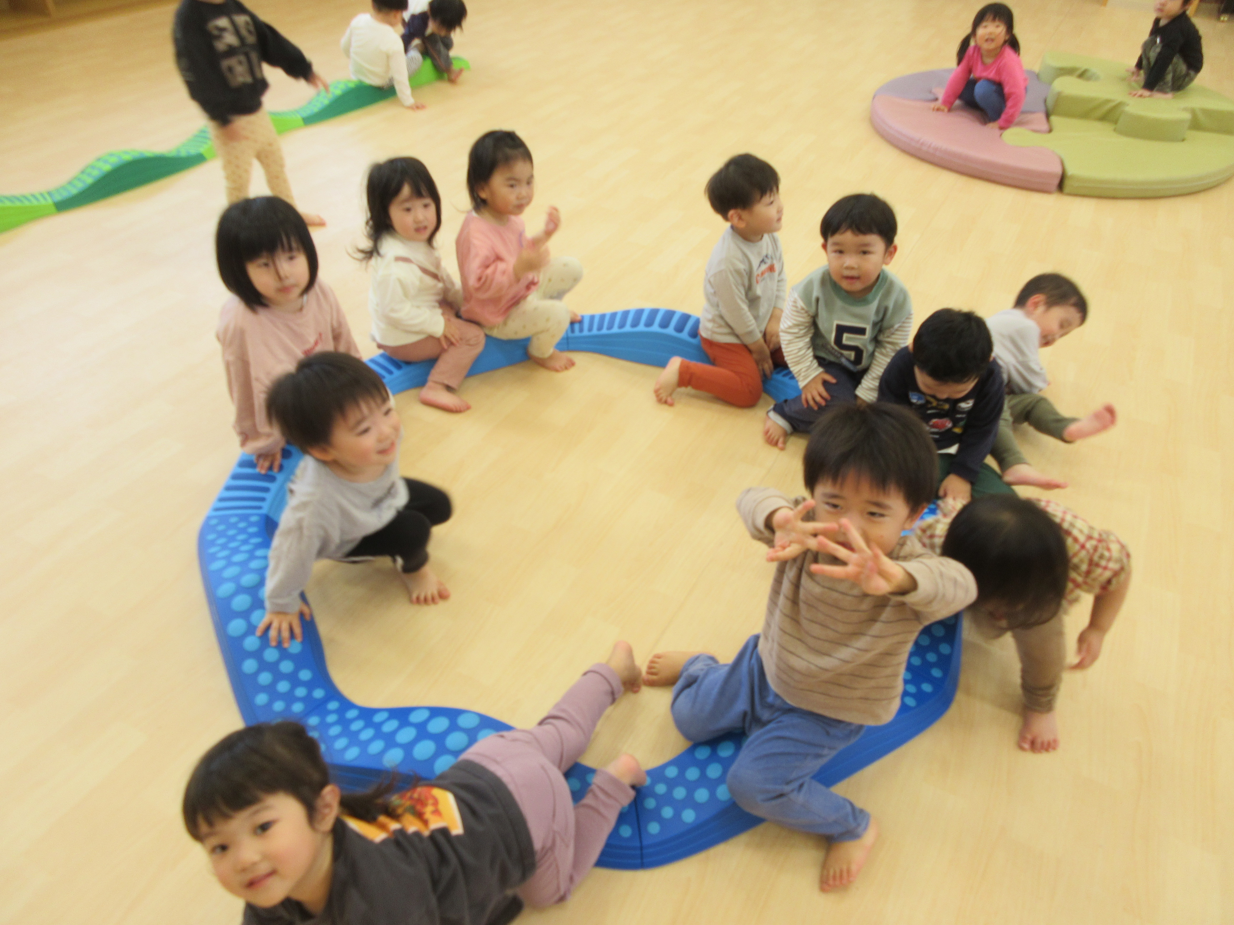 2歳児さんになるとバランスをとる遊びもいれば、絵本を開いて楽しむ子もいます♪