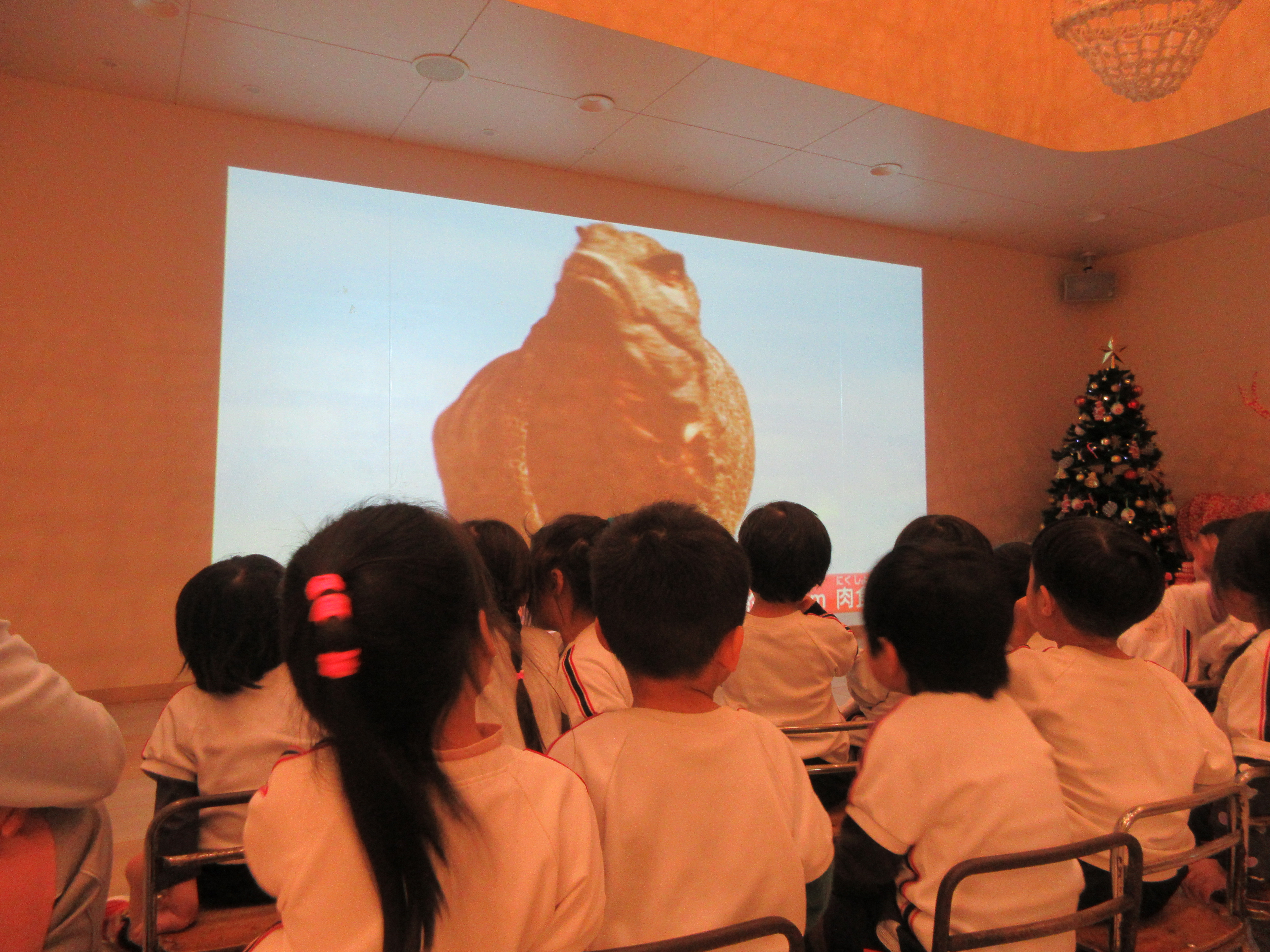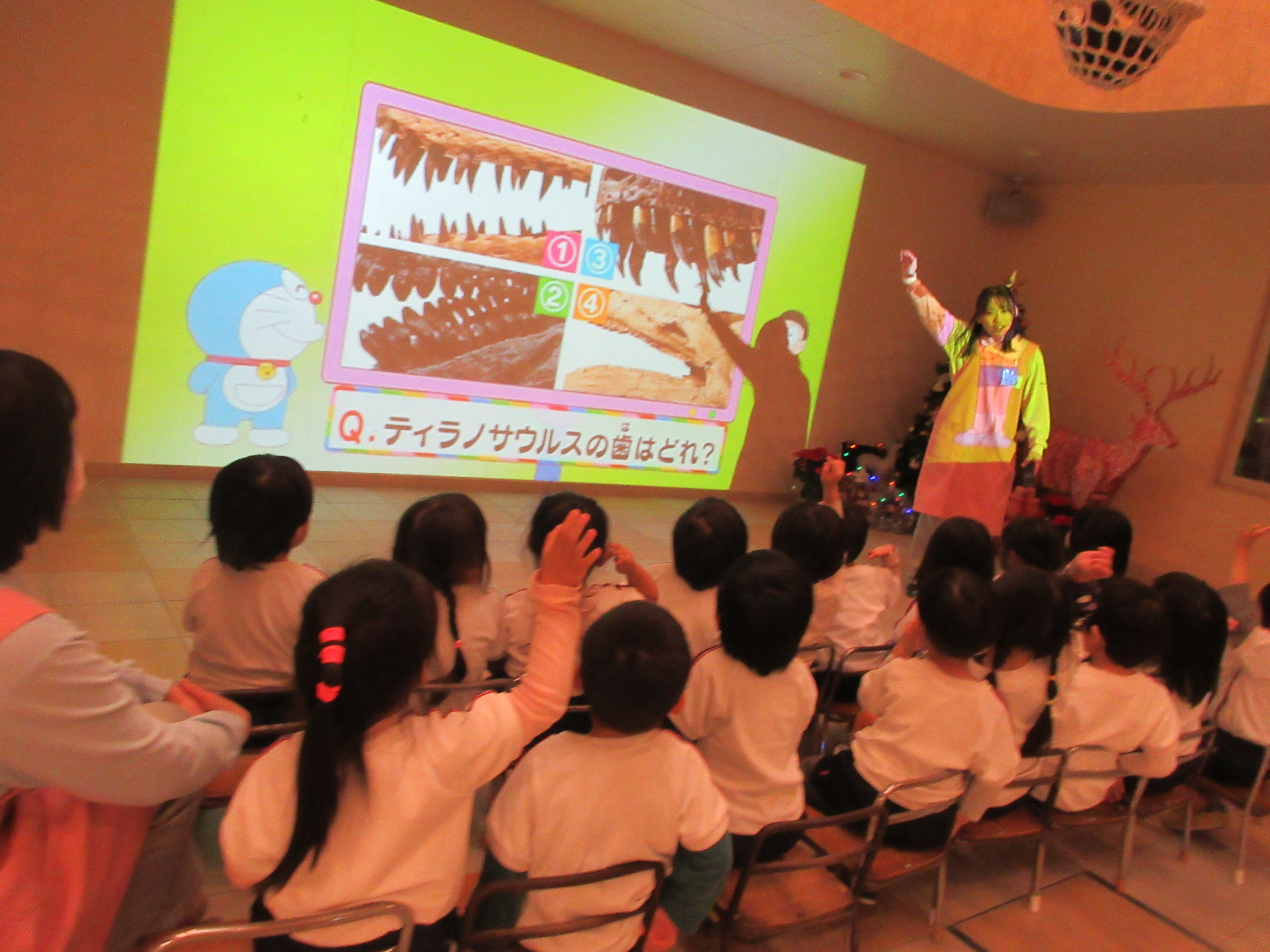 年少さんが恐竜の種類や歴史を勉強しました。迫力満点の映像で集中して見れてました(^▽^)/