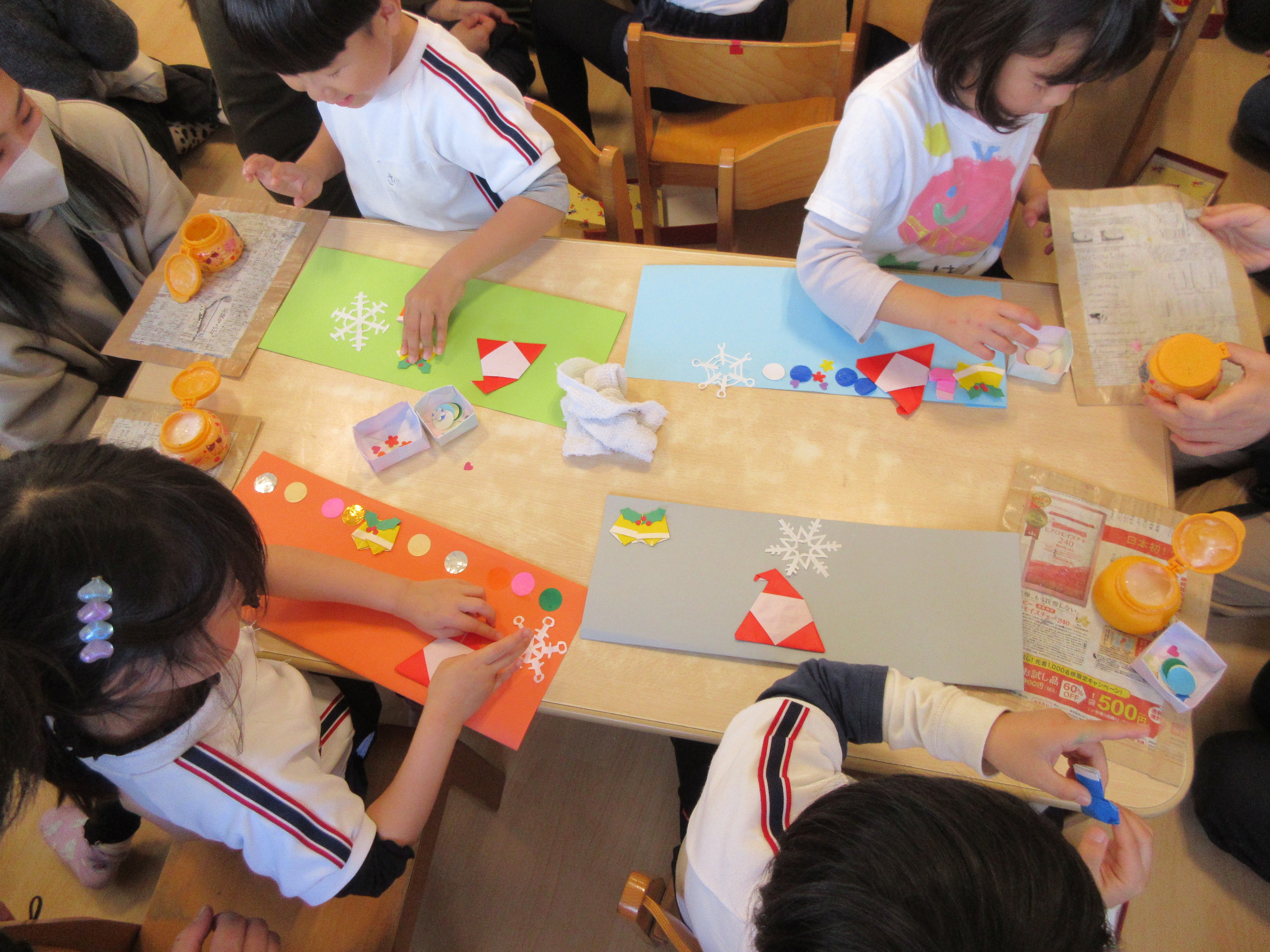 12月はクリスマスをテーマに保護者の方と一緒に制作をしました。
