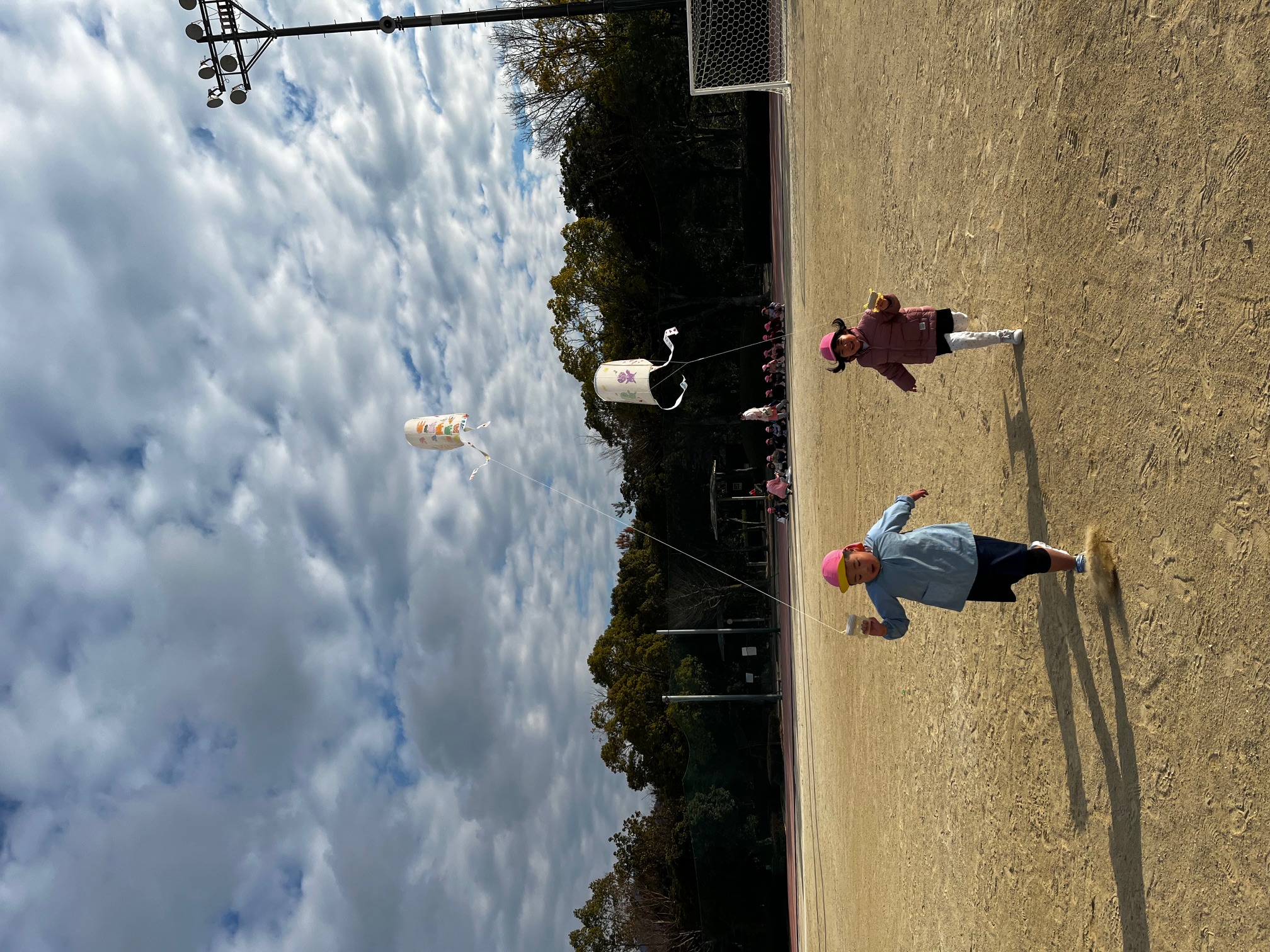 今日は、空城山公園にて、たこあげをしに行きました。手作りのたこは空高く気持ち良さそうに泳いでいました。子どもたちは、たくさん走って真冬を吹き飛ばしました。
