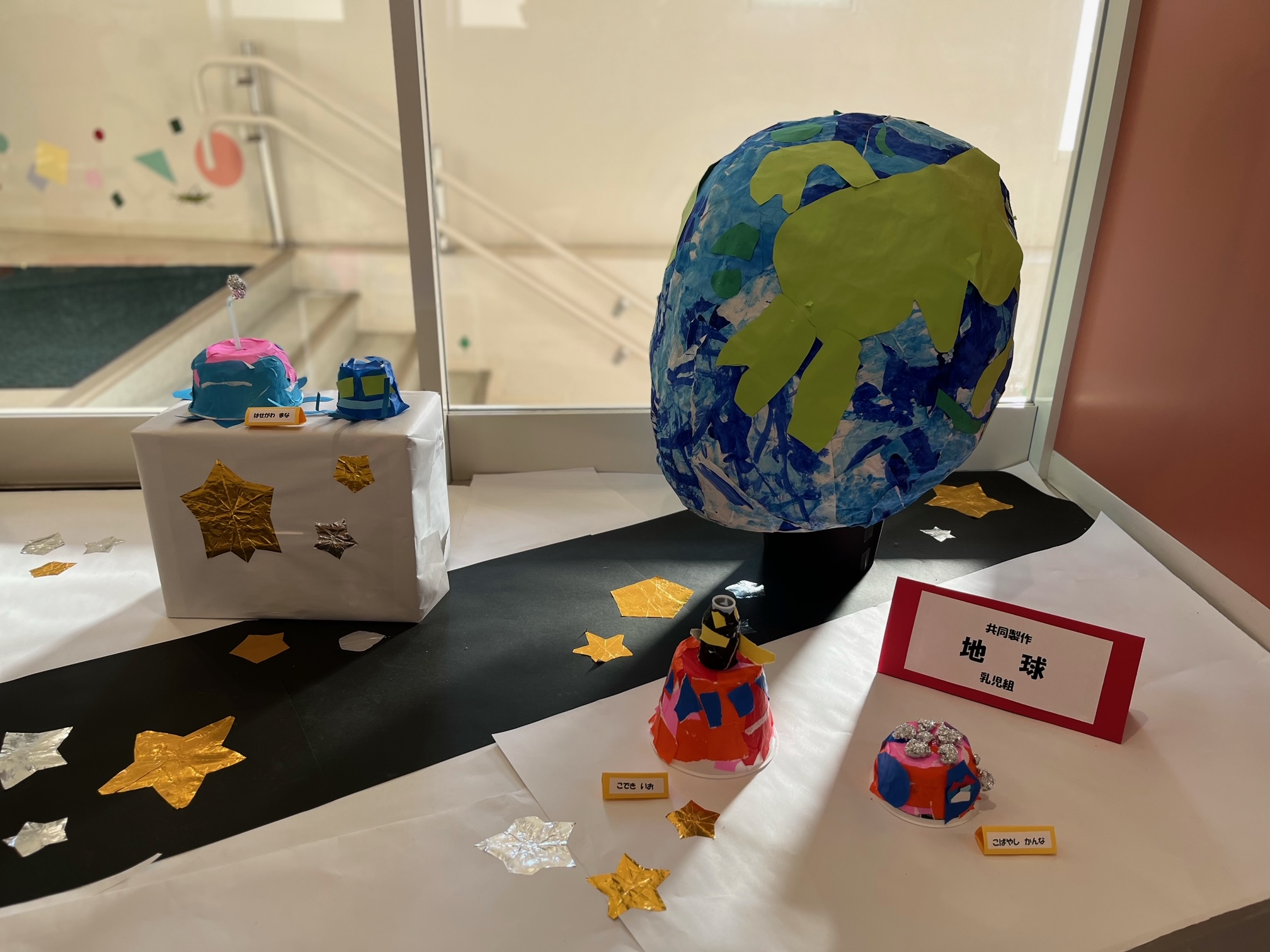 昨日までは乳児組さんの作品を展示させてもらいましたが、本日から年少組さんの作品を展示させていただいています。皆様、どうぞごらんください。