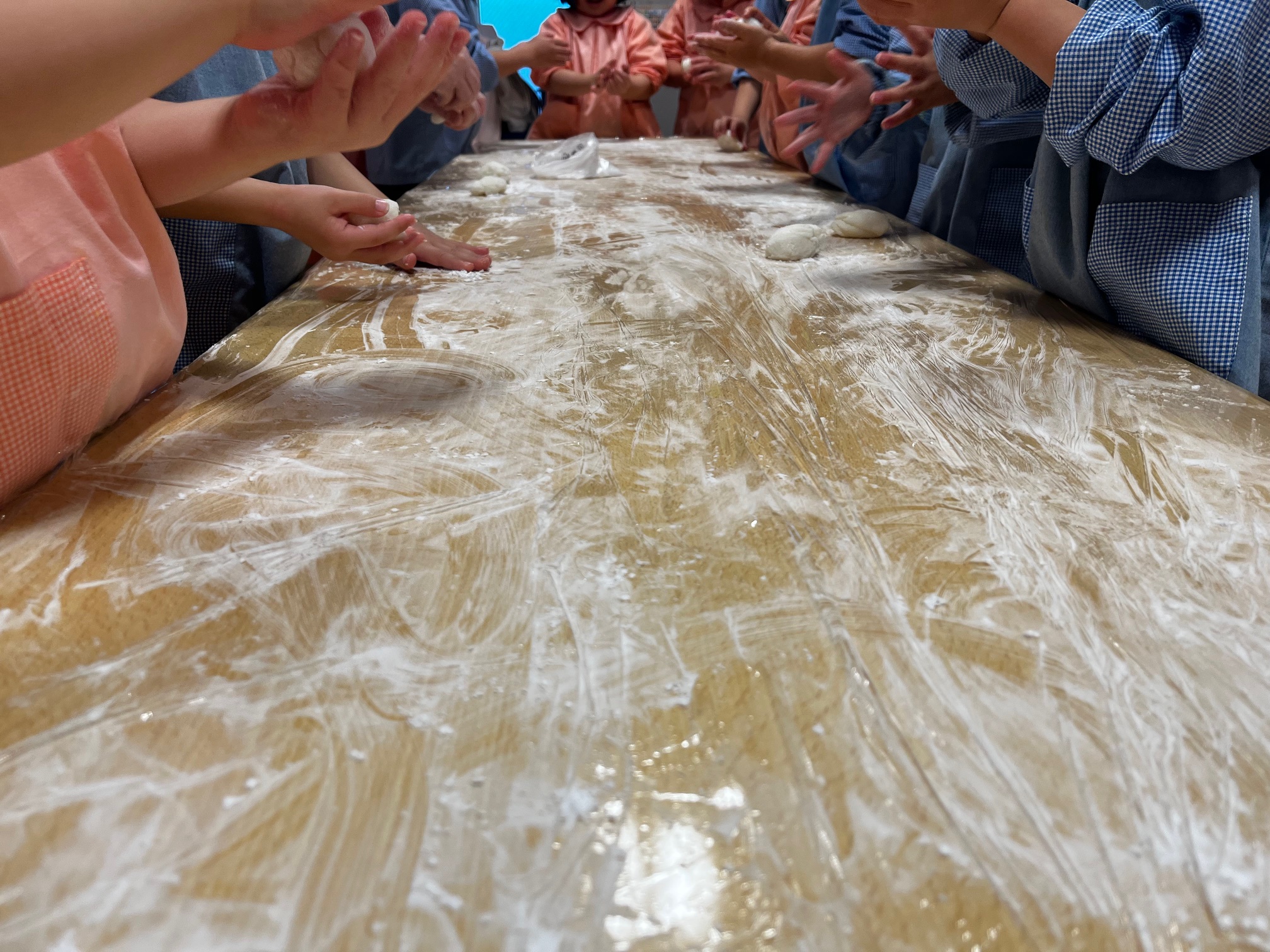 幼児組さんは、今日はおもちを皆で丸めてきなこをつけておいしくいただきました。