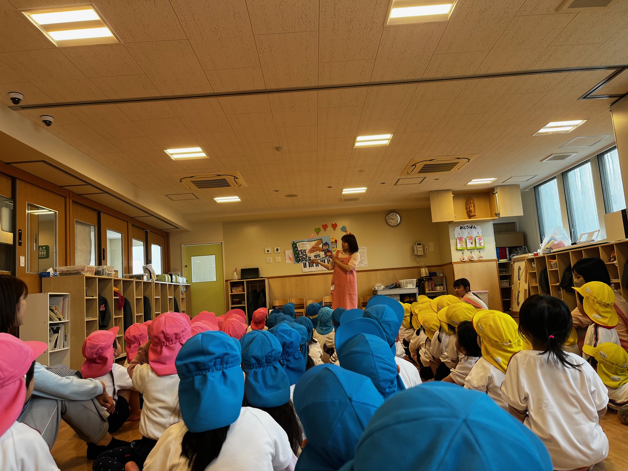 年少組・年中組・年長組さん、朝のお集りの姿です。